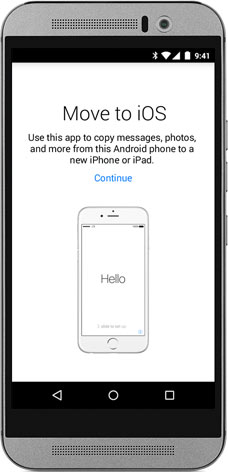 Launch the app on Android phone, choose the button of "Continue" and then keep following the prompts. On iPhone, press on "Continue" to go on when you get the page of "Move from Android". Wait for a code on iDevice and enter your Android device appears the window of "Enter Code" with this code.