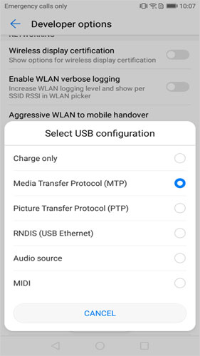 If you haven't selected the USB transfer mode on your Android phone (especially for Huawei phones), the program may fail to detect your phone even with the USB debugging is on. To fix that, you can follow the steps below to select the USB transfer mode after connection: