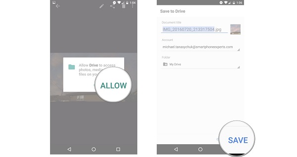 - Tap "SAVE" at the screen's lower-right corner and await the completion of the upload process to Google Drive.