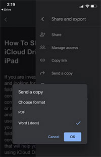 - Tap the three vertical dots in the upper right corner and select "Send a copy."