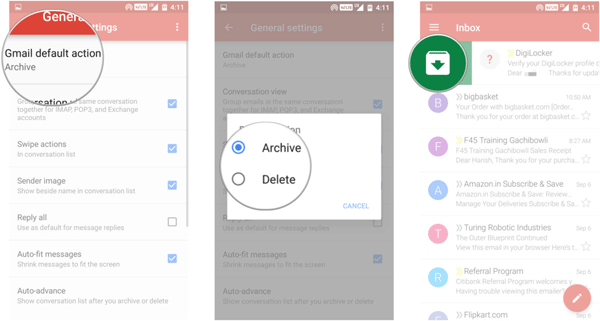 So how can you delete Gmail messages from Android phone when it lets you register email addresses from other provides as well? After all, the Gmail app may or may not let you swipe messages away by default. You may be entitled to Achieve the Gmail messages not to delete them. Then, make some changes on your Gmail app as instructed in the below.
