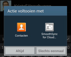 - The first time it should ask you if you want to "Complete action using Contacts or Smoothsync for Cloud Contacts".